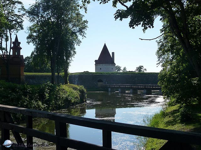 A város felől érkezve szép park mellett álltunk meg. A parkban pavilonok padok, kioszkok. Fahíd vezet át a vizesárkon. Még éppen megnézhettük zárásig a várat, szerencsénk volt. (belépő 50, nyugdíjasoknak 25 EEK) Igaz, valami rendezvényre készültek, így nem juthattunk el minden részletébe, de azért alaposan bejártuk. Az emeleten szépséges gótikus folyosóról nyíltak a reprezentatív termek, sok-sok boltív, masszív kandallók, kőpadok. Lépcsők vezettek feljebb. Itt voltak a múzeum kiállítóhelyei, a szokásos helytörténeti emlékek az ókortól napjainkig. Bonyolult átjárók rendszerébe keveredtünk, valószínűleg az egyik saroktorony mellé egy hidacskára. A tovább vezető út és lépcső zárva volt. Viszont a híd alatt több emeletnyi mélység tátongott, és időnként oroszlánordítás és hörgés hallatszott. Állítólag itt valóban oroszlánokat tartott a püspök, és a nemkívánatos elemeket közéjük dobatta. Nem lett volna olcsóbb megoldás? Oroszlánt tartani drága Miután kiélveztük az összes termet, folyosót, átjárót és csigalépcsőt, körbejártuk a várat és a vizesárkot. Hatalmas vastag falakon, töltéseken jártunk, helyenként látszottak a sarokbástyák, a vastag töltésbe épült kazamaták. A déli oldalon hangos zenére figyeltünk fel. A várfal külső tövében vidámpark működött. Színes hánytatók forogtak, emelkedtek és süllyedtek bömbölő zene kíséretében. Rosszat sejtettünk. A szállodánknak a környéken kellett lenni, mert kilátást ígértek a tengerre és a várra. Ja és csendet. Gyanúnk beigazolódott. Ha a vidámpark nincs, valóban csendes hely, kívül a városon, csak egy stadion választotta el a tengerparti mocsaras vidéktől. Nyugati oldalán le is lehetett menni a vitorláskikötőhöz. Néhány vállalkozó szellemű útitársunk meg is fürdött a tengerben – meglepően meleg volt a vize. A kikötőn túl terült el Kuressaare üdülő része, szállodákkal, drága éttermekkel, sétányokkal. A mi szerény szállónk barátságos, tágas, világos volt. Az ízletes vacsora után besétáltunk a városba, igazából az időt akartuk húzni, mert sejtettük, hogy a vidámpark zenéjétől nem nagyon fogunk tudni aludni. Szerettük volna megkóstolni a saaremaai sört is, az útikönyvek külön felhívták rá a figyelmet. Sajnos egyik vendéglátóipari egységben sem sikerült ilyet kapni. Megnéztük a kisváros helyi nevezetességeit, a városháza oroszlánjait, az evangélikus templom furcsa tornyát, az ortodox templom kertjét, a szabadságharcos szobrát, végül a régi mázsaházzal szemben telepedtünk le, itt sötétedett ránk. A bömbölő zene végül éjféltájban ért véget, de mi addigra a fáradtságtól mélyen aludtunk.