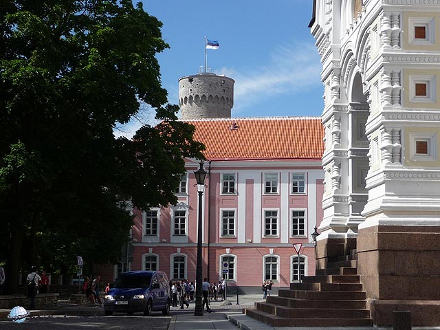 Hátul az Öreg Hermann, elöl a köztársasági elnök palotája, jobbra az orosz katedrális