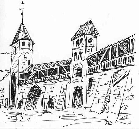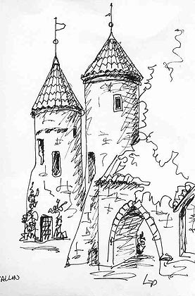 Tallinn óvárosába nem akárhol lehet bejutni, mert középkori városfalának nagy része ma is áll, 26 bástyával. A szállodánk felől a Viru-kapunál és a Tengeri-kapunál lehetett bemenni.
