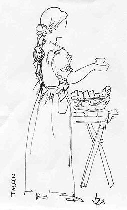 | Szentlélek templom a Kalács köz felől | Vendégcsalogató lányok pörkölt mandulát kínálnak |