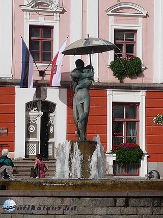 A városban sok a szobor, ráadásul jó szobrok. (A városháza előtt áll egy aranyos szobor, egy csókolózó fiatal pár – jobbról)