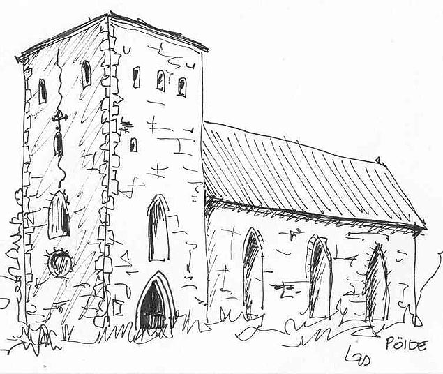 Az út tovább fenyőerdőkben vezetett, majd hosszú töltésen robogtunk keresztül. Eleinte még nádasok kísérték az utat, majd nyílt víz hullámzott a töltés mellett. Sok vízimadarat láttunk. A töltés valamikor a 70-es években készült, el is vágta azóta a víz áramlását, mocsarasodni kezdett a vidék. Mostanában híd építését tervezik. Mi megállás nélkül robogtunk át a töltésen, vágyakozva néztük az időnkénti kilátó parkolókat. Még negyedórát sem utaztunk Saaremaa szigetén, amikor Pöide templomához értünk. A falun kívül, erdő közepén áll Saaremaa legnagyobb temploma. Hatalmas templom, nem is értettük, mit keres erre egy ekkora templom. Erdő fefőfi oldalán az erdő felé ásatások nyomai. Jól kivehetők a korábbi falak, valószínűleg erődített templom volt. Tábla jelzi a bejárat mellett, hogy a XII-XIV. században épült. Nagyon rossz állapotban van. 1940 nyarán felgyújtotta egy villám és leégett. Kifosztották, azóta is kihalt állapotban van.