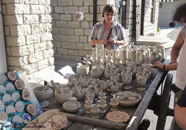 A parkoló mellett furcsa szürke kőből készült vázákat, mozsarakat árultak. Némi kommunikációs nehézség árán megtudtuk, hogy saaremaai dolomitból vannak. Egyedül itt, a sziget közepén található ez a fajta kőzet, amely jól faragható, csiszolható.