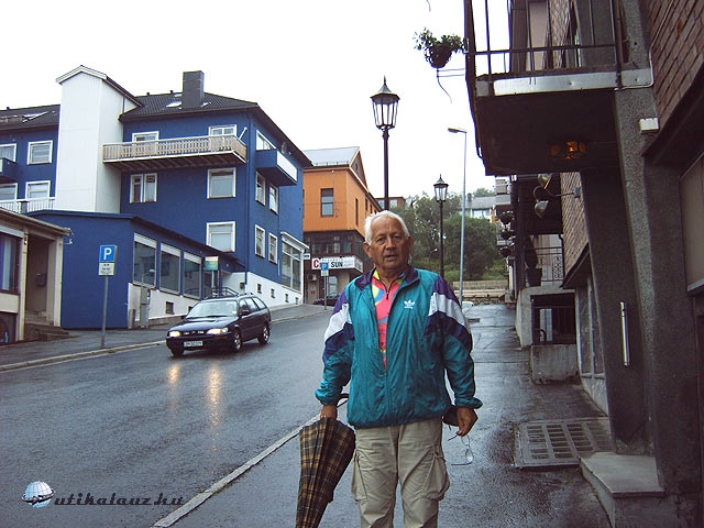 Trondheimet, a volt fővárost, a vikingek városát nyugat felé elkerüljük aztán még egy órát kacskaringózva balra lehajtunk a fjord egyik keskeny kiszögellésének aljára. A szinte üres kempingben bontunk sátrat kb. 500 m-re a vítükörtől. Lefekvés előtt, még világosban sétára indulunk. Apály lévén messze bementünk a homokos, kavicsos, rengeteg kagylóhéjjal, csigával, algával borított aljzaton, egészen a vízig. Hűvös szél fúj a messzi láthatár felől, ahol két kis lehorgonyzott hajó lebeg a vizen. Az égboltott összefüggő felhőréteg borította, amikor az enyhe szürkületben nyugovóra tértünk. Reggel a sátor falán kopogó esőre ébredünk. Kibújva a sátorból, kissé elámulok, látva, hogy a fjord vize közvetlenül előttünk hullámzik, itt a dagály. Gyorsan továbbindulunk, kiérve az E6-ra tábla jelzi: Narvik 920 km. Előrenézek a fényesen csillogó vizes aszfaltra, miközben azt mormolom: van még mit menni.