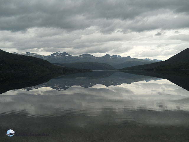 Elhagyjuk a fjordos partvidéket, a szárazföld belseje felé haladunk, a 4-500m-es platón, Lappföldön járunk. A jellegzetes tundra tájban, távolodva a partvidéktől ritkul a szürkeség, egyre nagyobbak a felhők közti ablakok. Tovább haladva a késő délután ellenére a magas napállás erőteljes fényében sütkérezhetünk. Itt is kirajzolódnak a hajdani jégtakaró tevékenységének eredményei az út mentén felsorakozó kisebb- nagyobb tavak, vagy a lejtős küszöbökön csillogó zuhatagok formájában.