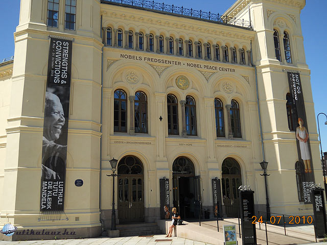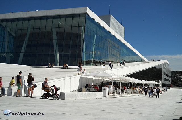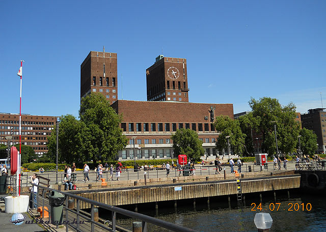 Mindenfelé nyűzsgő embertömeg, a városközpontból nyugati irányba haladunk, az impozáns Dom-templom mellett, a Karl Johans sétálóutcában üzletek sokasága előtt haladunk el, majd egy szökőkutakkal díszített park mellett a Frederiks gaten, gyönyörű virágágyakkal díszített út vezet a királyi palotához. A kapunál díszegyenruhában álldogáló őr némán tűri a turisták fotozását. Visszafordulunk a fjord felé, hatalmas sárga színű épület homlokzatán felirat jelzi, hogy itt adják át a “Béke -Nobel”díjat. A Radhusgaten a fjord végéhez érkezünk, szemben az óriási vörös téglából épült kéttornyos városháza, mögöttünk a kikötő, számos kisebb-nagyobb lehorgonyzott hajóval. Ugyancsak itt épült fel a 2008-ban befejezett, részben vízen álló üvegpalota, az operaház, a világ egyik leghíresebb ilyen létesítménye, ahol évente a nevezetes zenei fesztiválokon, világhírű zenekarok és énekesek lépnek fel.