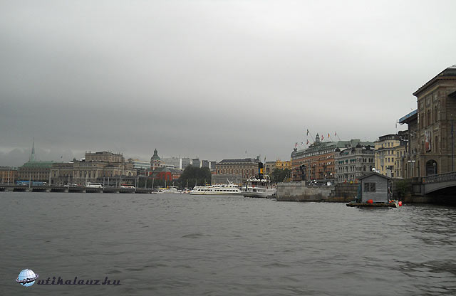 Kungsholmen szigetén ismert jellegzetes építmény a városháza, magas tornyán jól kivehető a “három korona” a svéd nemzeti szimbólum. Itt a Kék teremben, minden év december 10-én van a Nobel-díjak átadásának szertartása. A kellemetlen időjárás ellenére mindefele nagyszámú esőernyős ember, főleg turista nézelődik, mosolygós barátságos hangulatban. Stockholmi látogatásunk csúcspontját jelentette a másfél órás sétahajózás a csatonákon és a szigetek között.