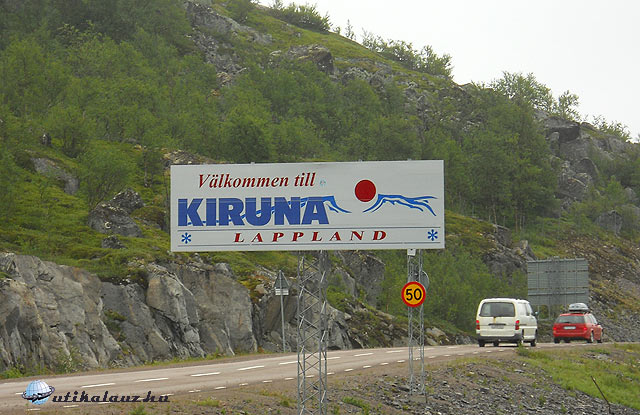Gyorsan megtesszük a 110 kilométeres távolságot és máris feltűnik a híres bányászváros Kiruna. Neve a “giron” alpesi fajdból ered, a város címerében a madár mellett a vas szimbóluma található. A külszíni bányászat már az 1600-as évektől kezdődött, a lappok kitermelték a kitűnő minőségű 70% ferrum tartalmú magnetitet. Tulajdonképpen a város mellet van két nagy ércdomb (Kirunavarra és a Luossavarra) 4 kilométer hosszúságú, 100 m vastagságú, enyhe dőlésű tömör vasérctelep. Ma ezeknek csak a maradványa látható, hosszú medenceszerűen kiásott mélyedések teraszos oldalakkal,melyeket hatalmas elnyúlt vörös dombok, a meddőhányók kísérnek. Az egész táj hatalmas sebként virít a föld felszínén. Valamikor a világháborúk előtt és közben itt bányászták a világtermelés egy negydét, ezért óriási fontossággal bírtak. Jelenleg a bányászat 1000 méteres mélységben folyik. A kitermelés még mindig jelentős, az évi mintegy 15 millió tonna ércet 8000 bányász hozza a felszínre. Sajnos az erőteljes kitermelés miatt a földkéregben egy süllyedés lépett fel, amely elsősorban a 25000 lakosú bányászváros jelenlegi központjában jelentkezett. Ezért az egész várost át kell költöztetni északnyugat felé, a 8 kilométerre lévő hegy lábához egy tó mellé. Fokozatosan bontják a házakat, több tíz emeletes bányászlakótelepet, valamint a közlekedési utakat is elköztöztetik. Az emlékmű jellegű városházát négy részre vágva szállítják új helyére. Hasonló sors vár az ország egyik legnagyobb fatemplomára is. A város szélén, nyírfa ligettel körülvett tavacskák mellett található a Ripan kemping, ahol kipihenjük fáradságunkat.
