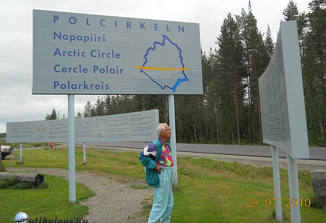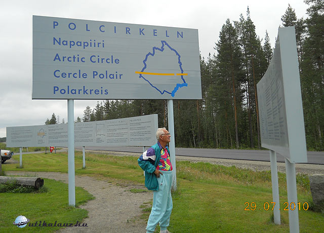 A Botteni-öböl felé az erdőstundra, majd a véget nem érő fenyőerdők gyéren lakott vidékein vezet utunk. Most immár visszafelé lépjük át a Sarkkört. Tágas parkoló fogad padokkal, asztalokkal. Különleges tábla jelzi ezt a kiváltságos földrajzi poziciót, valamint egy nagyszerű fából ácsolt épületkomplexum üzletekkel, vendégházzal várja az utazót.