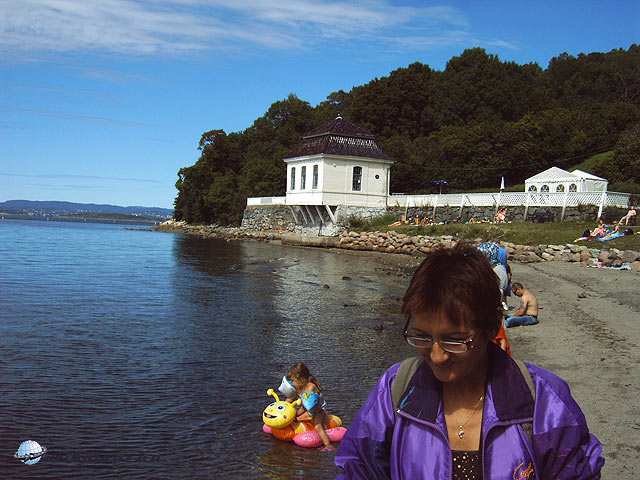 Fjord menti sétára indulunk, jól kitaposott ösvényen kacskaringózunk a sziklás parton, jól látható az egykori csúszó jégár sokezer éves tevékenységének eredménye a símára csiszolt sziklákon, vásott köveken. Több helyen is hivatalosan nem kijelölt strandokra, napozókra bukkanunk, ahol a bátrabbak megmártóznak, sőt úszkálnak is az általunk hűvösnek vélt vízben. A hajóforgalom a fjord szemben lévő nyugati oldalán zajlik, a mi oldalunkon sűrű a csónak és jacht közlekedés. Itt az északi szélesség 60-ik fokán (Stockholmmal, Helszinkivel és Szentpétervárral kb. azonos magasságban) megindulunk a város felfedezésére.