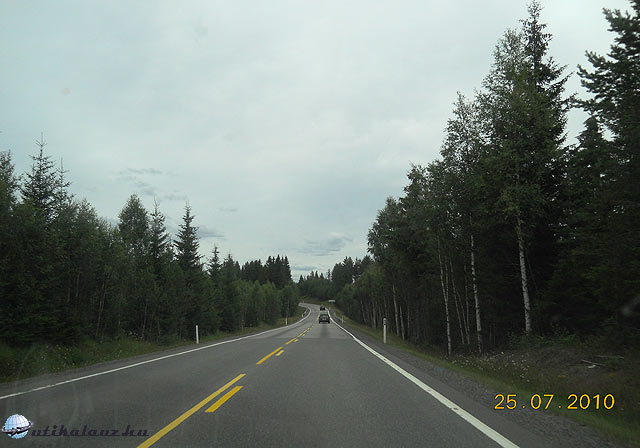 Második napja kacskaringózunk a fjordok mentén, mindenütt a lassan már unalmassá váló erdők kísérnek, emberi települések nincsenek, a halászfalvak valahol lent a víz közelében a fjordok aljában találhatók. Helyenként, a szárazföld belseje felől feltűnnek a Skandináv hegység 1600-1800 méteres hóval borított gerincei.
