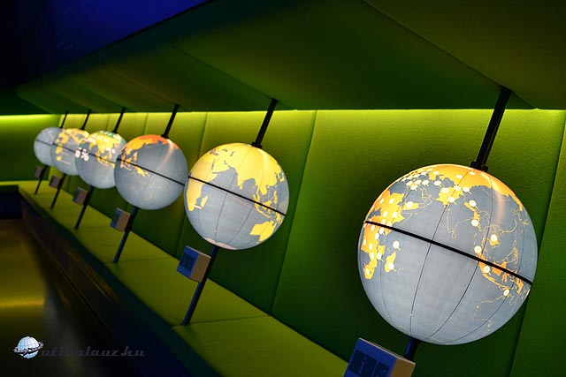 A többi gömb „meglátogatásához” először vissza kell menni a földszintre, a különböző állandó és időszakos kiállításoknak helyet adó gömbök között, a „csövekben” hol gyalogosan, hol mozgólépcsőn lehet közlekedni. Az egész egy zárt rendszer, az ember egy idő után már azt sem tudja merre jár.
