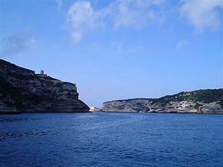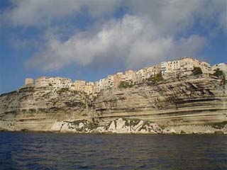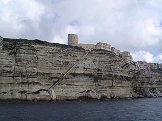 Ma is 8-kor indultunk, a cél Bonafaccio, a déli part legszebb városa.. 10 órára értünk oda. A kollégák megállapodtak egy vállalkozóval, hogy egy kis hajóval körbejárjuk a környéket 1 óra alatt, 8 € /fő áron. Nagyon érdekes volt a látvány a tengerről. A smaragd partvidék a függő cseppkövekkel, a Kormányrúd (ez is egy sziklaalakzat), a Sdragonatu barlang, ahova a kishajó be is tudott menni. Egy másik barlang bejárata (Szent Antoine) Napoleon kalapjára emlékeztet. Láttuk Aragon király lépcsőjét, amely 187 lépcsőfokból áll, a függőleges sziklafalon húzódik, a város alatt.( a képen)