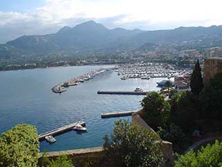 A Terra Vecchia városrészből indultunk. Itt a Keresztelő Szent János templomot néztük meg, végigmentünk a Place St. Nicolas éren, amely pálmákkal övezett sétatér, a szokásos Napoleon szoborral. Itt is megnéztük a piacot, majd átsétáltunk a Terra Nova óvárosba. Felmentünk a fellegvárba, a citadellára, bementünk a Szűz Mária templomba, lenéztünk fentről a kikötőre, ahol bent állt egy óriás komphajó (nem a mienk). Lesétáltunk a kikötő irányába, ahol találtunk egy tengerparti vendéglőt (Chez Mémé). Itt fél 12-től szolgáltak fel menüt, így búcsúzóul Soup Poisson-t, hallevest kértünk, hozzá kolbászt sült krumplival, desszertnek karamell krémet.