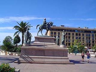 Ajaccio: 10,30-kor érkeztünk, 13 óráig tartózkodtunk a sziget 60 ezer lakosú fővárosában Napoleon szülőhelyén. Azzal kezdtük sétánkat még az egész csapattal, hogy megkerestük a Napoleon emlékházat, múzeumot. Meg is találtuk, de egy másik turistacsoport vezetővel előttünk bement a nyitáskor, minket a szigorú őr (nő) nem engedett be. Így kimaradt a bemenetel, nem volt türelmünk tovább várakozni. Felmentünk az itteni fellegvárba, útba ejtve az idegenlégiós laktanyát. Tovább sétálva megnéztük a Szent Erazmus templomot, később a Notre Dame templomot. Az utóbbiban keresztelték meg a császárt. Megnéztük a híres piacot is. A főtéren a Napoleon és testvérei szobornál is készült fénykép. Volt ott mindenféle gyümölcs, zöldség, lekvár, méz, húsok, de helyben fogyasztható ennivaló (sült kolbász, vagy lángosféle) nem.