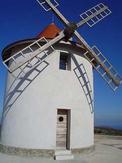 Negyedóra múlva indultunk tovább. Sokan a buszról is csattogtatták fényképezőgépüket a sziklás partokat és a tengeröblöket megörökítve. A szép helyeken meg is állt a busz, gépkocsivezetőnk tudta, hol vannak ezek. Ilyen pl. Buticella település előtt fekvő tengerparti látvány egy ki szigettel. 10,40-re értünk Moulin Mattei-hez, amely Korzika egyetlen működő szélmalmát jelenti. Egy kis sétával értünk fel a 400 m magasan álló szélmalomhoz. Be volt zárva az ajtaja, az ablakon benézve nem éppen a működéshez szükséges berendezési tárgyak voltak. Csak egy asztal, pár kép, könyv volt látható. A csúcsról letekintve Barcaggio település és kikötője látszott. Átmentünk szemben egy másik emelkedőre, ahol egy kőszobor emlékhely állt a sziget védőszentjét ábrázolva. Mellettünk kecskenyáj legelészett.