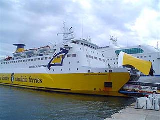 A 8,15-ös hajóindulás előtt egy órával léptünk a “Corsica Shuttle” nevű komphajó mellé a kikötőben, rövidesen fel is mehettünk. Határtalan hosszú gépkocsi áradat, 3 emeleten helyezkedtek el a kocsik. A földszinten a buszok, teherszállítók. Mi gyalog, lépcsőkön felhaladva értünk a fedélzetre. A nyitott fedélzetre is felmentünk, néhány fénykép itt készült. A hideg miatt inkább a fedett részre vonultunk egy szinttel lejjebb. Ott a “La Brasserie” büfé egyik kényelmes asztalánál találtunk helyet az ablak mellett. Vettünk kávét (1,30 €) és 2 Heinecken dobozos sört 3,30 €/db áron. 11 óra körül haladtunk el a Korzikához legközelebbi sziget mellett, ezt meghaladva már látszott a korzikai part körvonala, majd egyre közelebb kerültünk Bastia kikötőjéhez. Pontosan 4 órai út után 12,15-kor érkeztünk a révkalauz segítségével a kikötőbe, egy másik nagy hajó mellé.