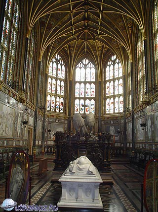 A kirakott számtáblák és a nyomtatott vezető alapján indultunk a várudvaron, gyönyörű belső kert mellett. A királynői részre csak be lehetett kukkantani a rácsos kapu mögött. A többi látnivaló: a Round Tower (Kerek torony), a Queen Mary’s Doll’s House (Babaház, ide háromnegyed órás sorban állással lehetett volna bejutni, az őrségváltás is  ennek közelében volt) majd a St. George’s Chapel, amely egy gyönyörű templomnak felel meg. (fafaragású díszes padokkal, csipkézett ablakokkal, zászlókkal).
