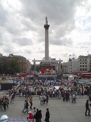 Utazásunk a pekingi olimpia idejére esett.  London, mint a következő olimpia rendezője, nagy hangsúlyt fektetett az olimpia propagálására. A BBC folyamatosan közvetítette a brit vonatkozású versenyeket, a Trafalgar téren hatalmas kivetítőn lehetett követni az eseményeket. Az arany hétvégén ( a britek akkor vagy 8 aranyérmet szereztek) hatalmas tömeg gyűlt össze a téren. Mi is itt kezdtük londoni sétánkat, majd a Pall Mall – Haymarket útvonalon a Piccadillly Circus-ig gyalog tettük meg az utat (jobboldali kép) . Megnéztük és fotóztuk a nevezetességeket (Eros szobor, Sanyo reklámok, a lovas szökőkút a sarkon).Tovább sétáltunk a Coventry Street-en a Leicester Square-re. Ott egy kicsit pihentünk, fotóztunk (Odeon mozi, Chaplin szobor). Tovább menve a Covent Garden-re jutottunk. Még 10 óra előtt odaértünk, nem indult be az élet. 10 órakor nyitott a piac, ott  megnéztük a régiségeket, lenéztünk a korlátokkal körülvett lenti vendéglőkre (zenekar és vendég sem volt még). Így mentünk tovább, megkerestük a Royal Opera House épületét. Be is mentünk a modern előcsarnokba. Az épület homlokzata nem igazán szép, azt is modern, fekete márvány díszíti. Egy-két prospektust elvittünk tanulmányozásra, emlékbe. Amikor kiértünk ismét a térre, már megjelent egy mutatványos, nagy szöveggel. Nehezen indult be a mutatvány, de végül bekötöztette magát egy hosszú fémlánccal egy kényszerzubbonyba és előre meghatározott időre  – állandó szövegelés kíséretében – kiszabadult, nagy tapsot kapott. A James Street-en is megjelentek a mutatványosok, illetve egy fekete, fémszerű ruhás élőszobor, pénzbedobás után változtatott pózán.