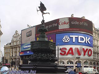 Utazásunk a pekingi olimpia idejére esett.  London, mint a következő olimpia rendezője, nagy hangsúlyt fektetett az olimpia propagálására. A BBC folyamatosan közvetítette a brit vonatkozású versenyeket, a Trafalgar téren hatalmas kivetítőn lehetett követni az eseményeket. Az arany hétvégén ( a britek akkor vagy 8 aranyérmet szereztek) hatalmas tömeg gyűlt össze a téren. Mi is itt kezdtük londoni sétánkat, majd a Pall Mall – Haymarket útvonalon a Piccadillly Circus-ig gyalog tettük meg az utat (jobboldali kép) . Megnéztük és fotóztuk a nevezetességeket (Eros szobor, Sanyo reklámok, a lovas szökőkút a sarkon).Tovább sétáltunk a Coventry Street-en a Leicester Square-re. Ott egy kicsit pihentünk, fotóztunk (Odeon mozi, Chaplin szobor). Tovább menve a Covent Garden-re jutottunk. Még 10 óra előtt odaértünk, nem indult be az élet. 10 órakor nyitott a piac, ott  megnéztük a régiségeket, lenéztünk a korlátokkal körülvett lenti vendéglőkre (zenekar és vendég sem volt még). Így mentünk tovább, megkerestük a Royal Opera House épületét. Be is mentünk a modern előcsarnokba. Az épület homlokzata nem igazán szép, azt is modern, fekete márvány díszíti. Egy-két prospektust elvittünk tanulmányozásra, emlékbe. Amikor kiértünk ismét a térre, már megjelent egy mutatványos, nagy szöveggel. Nehezen indult be a mutatvány, de végül bekötöztette magát egy hosszú fémlánccal egy kényszerzubbonyba és előre meghatározott időre  – állandó szövegelés kíséretében – kiszabadult, nagy tapsot kapott. A James Street-en is megjelentek a mutatványosok, illetve egy fekete, fémszerű ruhás élőszobor, pénzbedobás után változtatott pózán.