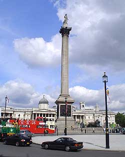 A reggeli után indultunk a városba. A metró állomáson fényképes hetijegyet vásároltunk, amely a 3. zónában korlátlan metró és autóbusz utazásra jogosít. Ha jól emlékszem, Ł14 volt az ára. Egy plasztikkártyát tartalmaz, a megállókban ezt kell kezelni, a buszon az igazolványt felmutatni. Az állomásunk a Northern (Északi, fekete színű) vonalon fekszik. Hamar megszoktuk az útvonalat, a metrókocsikban egy futó felirat is jelezte, mi a jelenlegi és a következő állomás. Ezúttal Charing Cross-ig mentünk, onnan rövid út után a Trafalgar térre értünk. (Nelson admirális oszlopon álló szobra, fekete oroszlánokkal, valamint a többi látnivalóval, galambokkal). Kis eső jött, beálltunk a National Galery fedett oszlopos előterébe. Onnan indultunk a Covent Garden-be. (Mutatványosok, a My Fair Lady színház épület, Appel Markt, zenészek a vendéglő teraszán, vásári sokaság). Megkerültük az épületet és egy másik úton vissza indultunk a Piccadilly Circus felé (Eros -Ámor- szobor, Sanyo fényreklámok, lovas szökőkút). Tovább a Trocadero, csak az alsó szintre mentünk be.