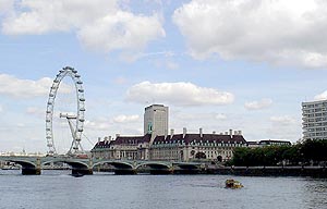 Metróra szálltunk, Tower Hill-ről Westminster-re mentünk a zöld (District) vonalon. Ott megnéztük a sétahajók indulási helyet. Végül a hajózás lehetőségéről lemondtunk, tovább nézelődtünk a parton. A túloldalon látszott a London Eye, az óriáskerék, 25 fős üvegkabinokkal, 1 óra alatt fordul meg. Végül ezt is kihagytuk a sűrű programok és a sorban állás elkerülése miatt.