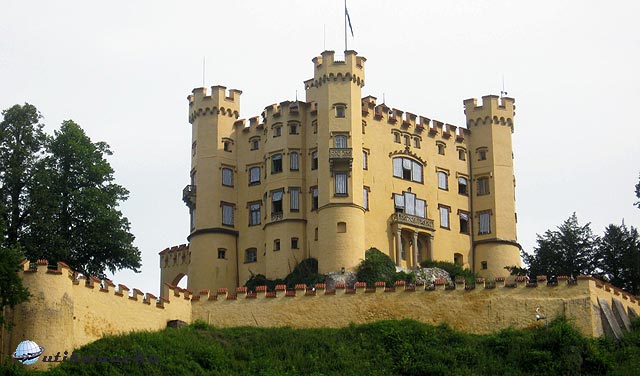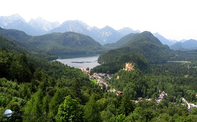 Reggeli után 8,50-kor indultunk Reutte városon (még Ausztria) a németországi Schwangauba. Hatalmas buszparkolóban álltunk meg, maga a település a kastélylátogató turistákból él. A parkoló felett magasodik a Hohenscvangau-kastély.