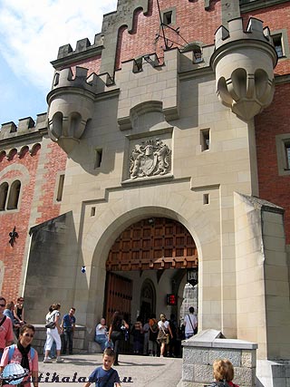 A buszparkolóból kb. 40 perces gyalogúttal lehet felérni a várkastélyhoz, de zsúfolt különbusz és lovas bérkocsik is viszik fel a látogatókat. Felérkezés után még várni kellett az előre megváltott belépőkártyák (8 euró)  érvényesítésére és a bebocsátásra. A mi csoportunk 446.számmal 11,50-kor indult. Belépés után magyar nyelvű audio készüléket a fülünkhöz tartva jártuk végig a díszes, fényűzően berendezett termeket. A helyi idegenvezető  egy-egy teremnél aktivizálta az audio készüléket, majd elhangzott az odatartozó szöveg. A csoportban minden náció hallgatta a saját nyelvén a szöveget, így szép csendben végigvonultunk a termeken kb. 40 perc alatt. Leadtuk a készülékeket, majd a több helyiségből álló ajándékbolthoz jutottunk. Ott volt üvegkalitkában kiállítva a vár makettje is. Magyar nyelvű kastélykalauzt is találtunk 5 euró áron. Továbbhaladva a királyi konyhához jutottunk, itt már szabadon lehetett fényképezni. A kastélyban ez tiltott, még díjazás ellenében sem lehet fényképezni. Találkoztunk még egy vetítőteremmel is, ahol filmen is bemutatták a  kastélyt és a történelmi környezetet, eseményeket.