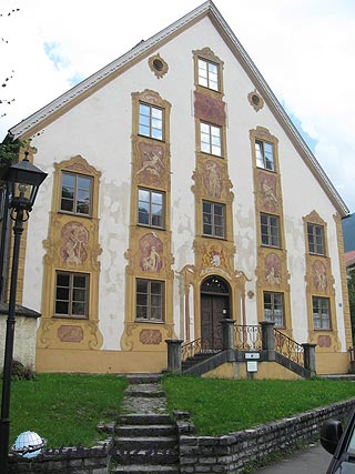 A Neuschwansteini-kastély távolabb, az Alpsee felett emelkedik, kecses tornyú, a német lovagkor stílusában építtette II. Lajos bajor király 1869-1886 között  Wartburg mintájára. Wagner volt a király mintaképe, számos Lohengrin színpadképi megoldás, hattyúszobor díszíti a kastély termeit.