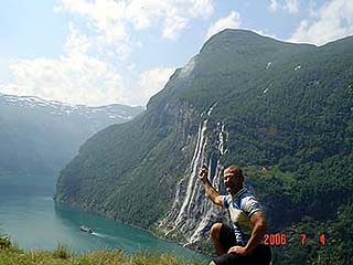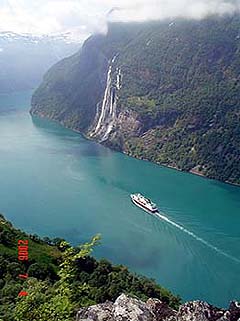 7.nap: Reggel sűrű ködben (~600m-es hágó) értem el a híres Geirangerfjord-ot. “Szárítkozás” után jöhetett a kötelező hegymászás a Hét-Nővér- vízeséshez. A látványt nem lehet leírni, de meg kell érte dolgozni. A fjord túlsó feléről indul a jelölt turistaút, ami helyenként elég meredek (felfelé és lefelé is), amúgy pedig viszonylag hosszú. Nem árt egy jó túracipő a kb. fél napos túrához. A túrázás mellett van még lehetőség hajókirándulásra ill. kajakozásra is. Én ezt sajnos kihagytam, bár innen sem lehet valami csúnya a táj. (A bérleti díjat nem mertem