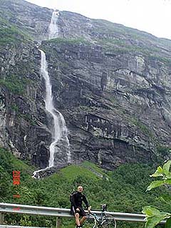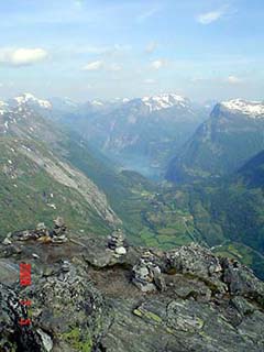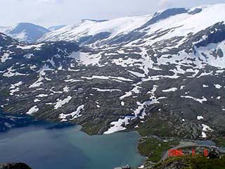8.nap: Napi bölcsességem: Norvégia a legszebb ország! Reggel szintén egy hágó várt (1030m), amit gyorsan le is küzdöttem, mivel nem volt még az a nagy meleg. Ez jó tanács lehet minden hágó előtt! Innen gyalogosan folytattam az utam a Dalsnibba-ra (1500m), aszfaltos út hiánya miatt. Amúgy a csúcs elérhető autóval is, de ezért a kis kényelemért fizetni kell. A szűk, kanyargós, meredek szerpentin nagy odafigyelést követel a vezetőtől! (Mindenki “örült” a szembejövő turistabusznak!) A csúcson a látvány pazar volt, még a Geirangerfjordot is látni.
