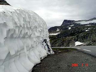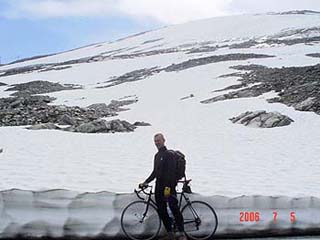 14. nap: A hajnali “alag-útazás” után ráfordultam a Snovegen meredek kaptatójára, mely 1300m magasra visz. (Ezt a hágót hidalja át a világ jelenleg leghosszabb közúti alagútja a 24,5km hosszú Laerdalstunnelen.)
