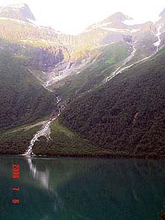 magasságban mindenkit fokozott óvatosságra intek!!! Az út amúgy roppant vadregényes és kietlen, s közben még gyönyörködhetünk (gyönyörködhettem volna) a Glittertind ill. a Galdhopigen gleccsereiben is. Lent a csodálatos Lustrafjorden partján délutánra megint utolért az eső, mely másnap „kemény” 0 km megtételére kényszeríttet. Az egész napi esőnézéstől izomlázat is kapott a szemem! Amúgy az egyébként meleg völgyben egész nap csak 13 °C volt! (120km)