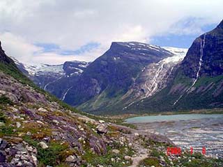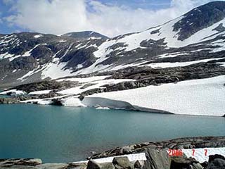 9.nap: Ez a gleccserek napja! (Kjenndalsbreen, Bodalsbreen, Briksdalsbreen) Eredetileg a Kjenndalsbreen-t akartam megnézni, ami sajnos le volt zárva (lavinaveszély, kőomlás?), így helyette, mérgemben beterveztem a Bodalsbreen-t. Persze utólag nem bántam meg, de egy könnyebb hosszú gyalogtúrára mindenki készüljön fel. A látvány leírhatatlan! (Ezért vannak fényképek.) Innen továbbtekerve jutottam el a közeli Briksdalsbreen-hez. Ez egy tóba ömlő gleccser, mely rövidebb gyalogtúrával elérhető. Így a nap végére, igaz sok gyaloglás után, de csodát láttam. Kötelező! Este eső. (60km)
