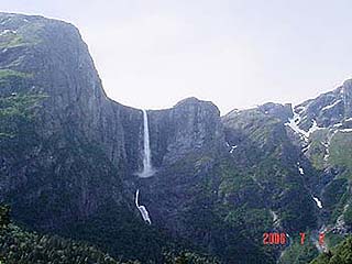 19.nap: Ma egész nap a sokak által ismert Voringfoss vízesésben gyönyörködtem, mely a Mabodalen-völgy egyik fő nevezetessége. Az Eidfjord-tól a vízesés elérhető, a kerékpárral behajtani tilos alagutakkal tarkított főúton ill. a régi keskeny úton. Én az utóbbit választottam. Ez sokkal látványosabb, meredekebb és egyúttal veszélyesebb is, de csak innen érhető el a vízesés “alulnézete”. Ez égészen más dimenzió mint felülről (na az sem csúnya), így minden autósnak javasolhatom, hogy kis időre “dobja el” a füstkibocsátóját és túrázzon. Garantálom, hogy