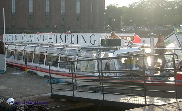 A vidámparkban kipróbáltunk játékokat, de persze nem nyertünk. Megérkezve a Skanzenbe sétálgattunk (jobboldali kép), majd egy kisvonatra felültünk (30 KR volt, ezt fizetnünk kellett ) és azzal is bejártuk a részeket. 5 órakor hagytuk el a Skanzent, a 47 busszal visszamentünk a központig, gyalog lesétáltunk a partra, mert a Stockholm kártyában volt egy 50 perces ingyen városnéző hajóút is. A Városháza mellől indul ez minden óra 30 perckor! Míg vártunk az indulásra, fagyiztunk ill. ettünk egy brióst. A fagyi 1 gombóc 20, két gombóc 25, három gombóc 30 KR, a briós 15 KR.