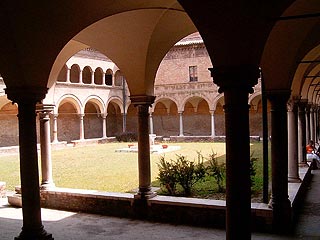 A tér sarkából egy keskeny utca indul, végén fehér kőből faragott mauzóleum rejti a nagy költő, Dante hamvait. Ez is nemzeti kegyhely az olaszoknak de ennek hosszú sora van. Dante Firenzében született és a szíve, lelke is mindig a városért dobogott. Fiatalon az a tisztesség érte, hogy tanácstag, sőt prior lehetett. Épp követségben járt a pápánál, mikor a nagybirtokos „feketék” pártja megtörte a kereskedők pártja, a „fehérek” uralmát és ahogy az manapság is lenni szokott, a régi garnitúrát „lecserélték”. Így lett Dante száműzött és bár voltak támogatói, élete végéig szenvedett az igazságtalan ítélet, szeretett városa haragja miatt. Feltehetően ebbéli keserűsége is ihlette világraszóló művének, a Divina Comedia-nak megalkotását. Ravennában élte utolsó éveit, ott is halt meg, hamvait a ferenciek kolostorában helyezték örök nyugalomra. A ferenci szerzeteseknek azonban olyan jól sikerült a koporsót elrejteniük, hogy a kolostor lebontásakor már nem találták meg, csak a helyén emelt, ma is szép mauzóleum őrizte emlékét. Így mikor Firenze bűntudattól áthatva a hamvak kiadását követelte, a pápai sürgetés dacára sem sikerült rábukkanni. Csak 1865-ben a költő születésének 600 évfordulóján találták meg egy befalazott faládikában és helyezték el immár véglegesen a ravennai mauzóleumban, a firenzeiek örök szégyenére.