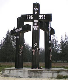 A Szent Anna tavat néhány éve téli körülmények között láttuk, és kíváncsiak voltunk, hogy néz ki a tó és környéke tavasszal. Korondról a 13A úton mentünk Székelyudvarhelyen (Odorheiu Secuiesc) keresztül Csíkszereda (Miercurea-Ciuc) felé. Székelyudvarhelytől kb. 35 km-re érjük el a Tolvajos tetőt, ami az út bal oldalán látható hatalmas hármas keresztről ismerhető fel. Meg arról, hogy innen indul balfelé egy kb. 6-7 kilométeres (elég gyenge minőségű) út Hargitafürdőre (Harghita-Băi), az ismert magaslati üdülőhelyre. Innen turistaút vezet a Hargita-csúcsra, de az esős idő miatt erről letettünk.