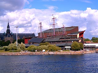 Már éhesek vagyunk, de most ez is várhat, a Vasa múzeum csak hétig van nyitva, azt nézzük meg. Amíg beérünk a múzeumba, elmondom nektek a Vasa történetét. A Vasa 1626 körül épült hadihajónak II. Gusztáv Adolf parancsára, aki a harmincéves háborút gondolta eldönteni ezzel a svéd csodafegyverrel. A hajó méreteivel és díszes küllemével Svédország erejét, hatalmát szándékozta sugallni. 62 m hosszú fedélzetén 64 bronzágyú sorakozott, fővitorlája több mint 50 m magasra nyúlt, legénysége 437 fő volt, legfőbb éke a csaknem 700 faragott szoborral díszített tatja. Az építéssel egy dán mestert bíztak meg, aki szakított a viking hajók jól bevált formájával. A magas építés és a felső fedélközben elhelyezett ágyúk azonban labilissá tették, felavatása helyétől pár száz méterre a svédek nagy-nagy szégyenére felborult és elsüllyedt. 1956-ban talált rá egy kitartó amatőr búvár a Ryssviken öbölben, ahol az alig sós viznek köszönhetően jól konzerválódott, de így is komoly műszaki teljesítmény volt a hajót az iszapból kiszabadítani 1956-ban, a megmaradt részeket összerakni és konzerválni. A kiemelés után két hajó fogta közre és úsztatta be abba az e célra ásott csatornába, ahol egy bonyolult gyám-rendszeren újra felépítették, a hiányzó részeket kipótolták. A csatornát aztán betemették és a hajó fölé egy csinos fa-épületet húztak, melynek tetőszerkezetét a Vasa-ra emlékeztető árbócokkal díszítették. Minderről egy filmet is láttunk a múzeum vetítőtermében. A projekt 60 millió koronás végösszegének előteremtésére országos adakozás indult és így lett az ügy a svéd nemzeti összefogás jelképe. A múzeumban klimatizát levegő és takarékos megvilágítás szolgálja a hajó megállíthatatlan öregedésének lassítását. A nemzeti csatahajót a több szinten is köré épített folyosókról bámulhatja meg a látogató. A hajó néhány kívülről nem látható érdekes részét életnagyságban is megépítették és egy félbemetszett makett is szolgálja a nagyérdemű tájékozódását. A hajó csaknem fekete deszkázata, az impregnáló anyag fényes felülete és a derengő megvilágítás miatt a fotóim csak annak dokumentálására jók, hogy tényleg ott voltam, a jól megvilágított makett fényképezésével tudtam kárpótolni magam.