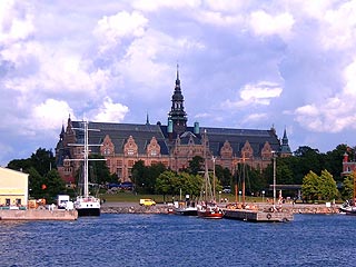 Az egész nagyon hasonlít a pesti Duna-korzóra. Nincs idő bámészkodni, hajónk, a Cinderella, egy vízsugár meghajtású 150-200 személyes motoros már indul. Most, hogy a partot elhagyjuk, látszik csak igazán, milyen szép a palotasor. Lassan elhúzunk a Vasa-muzeum előtt, háttérben a Nordiska Museet (az Északi Múzeum) roppant méretei mellett is arányos, tornyos épülete: ez már a hajdani Királyi Vadaspark, a Djurgaarden szigete. A fák közül itt-ott klasszikus stílusú nyári lakok, pavilonok sejtetik kacéran szépségüket. A másik oldalon két óriás a vizen, gondolom a Botteni-öblön át a finn partokra szállítanak embert, kocsit, kamiont, vonatot.