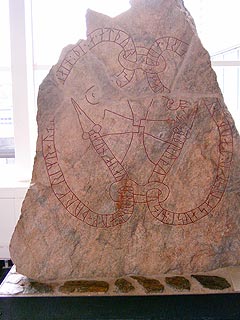Gyors megismerkedés Elzával, aztán beülünk és pár pihenővel időben kiérünk Arlanda-ra. A vakszerencsének hála, épp a legtávolabbi épülettől indul a gépünk, így van mód bámészkodni, embereket, repülőket megfigyelni és egy üveges vitrinben még egy rúna-követ is láthatunk. Ezek az írott kövek a vikingkorból valók, a svédek első írásos emlékei, jobbára egyenes vonalak kombinációjából álló írásjeleik engem a székely rovásírásra emlékeztetnek, de ez az írás egy pajzs-forma szegélyén tekereg végig, nem sorokba rendezett.